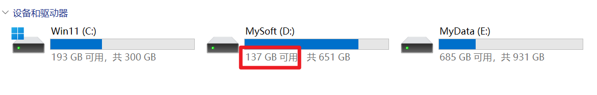 现在的可用空间是137GB,减少了1G空间,虽然不是很多,但是它是在完全不影响我原有的文件夹的情况下减少的。