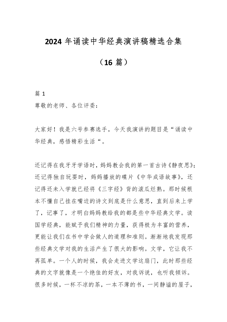 (16篇)2024年诵读中华经典演讲稿精选合集