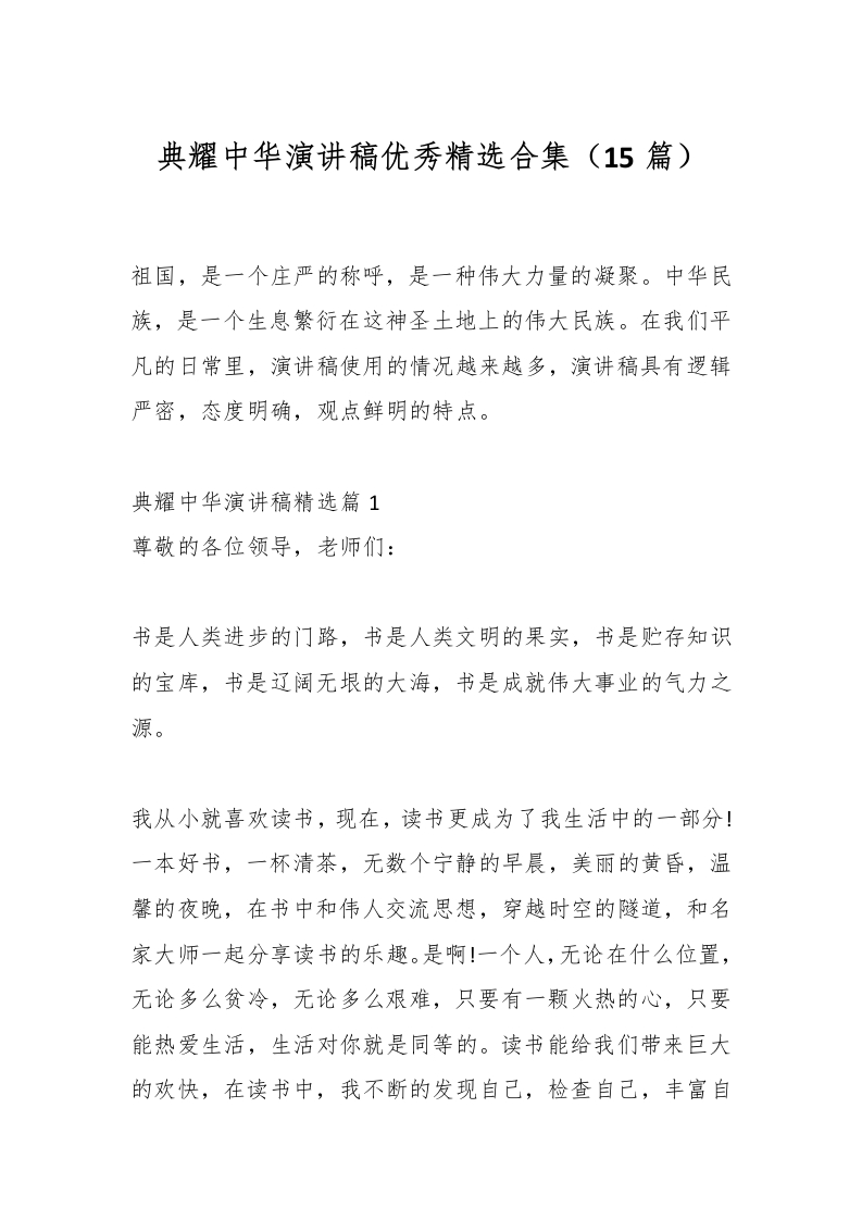 首页热门资源演讲讲话(15篇)典耀中华演讲稿优秀精选合集