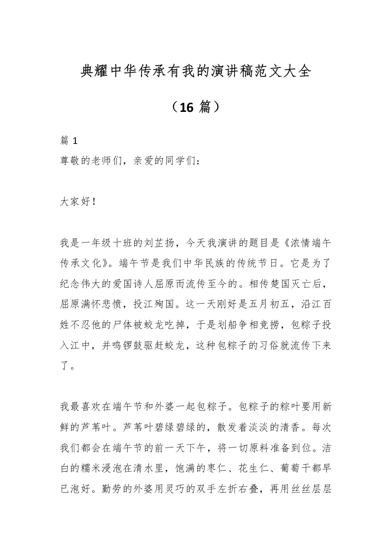 (16篇)典耀中华传承有我的演讲稿范文大全