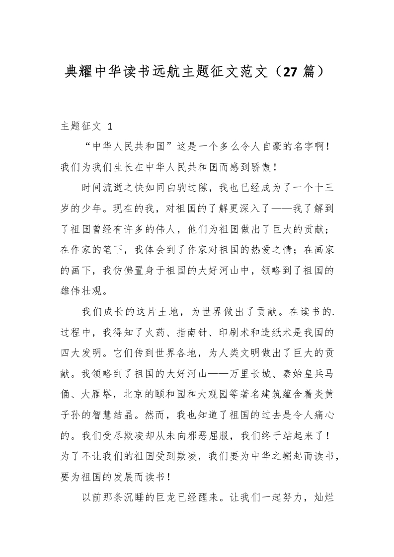 (27篇)典耀中华读书远航主题征文范文