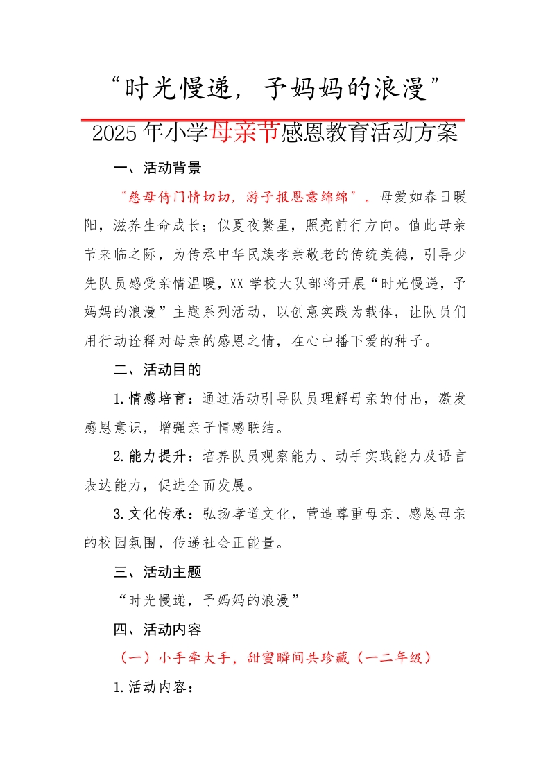 首页热门资源学校活动1.时光慢递,予妈妈的浪漫——2025母亲节活动方案