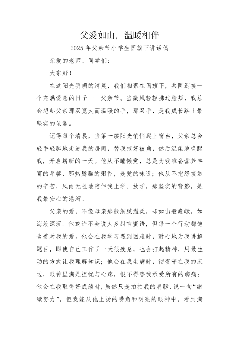 2.2025年父亲节小学生国旗下讲话稿-父爱如山,温暖相伴