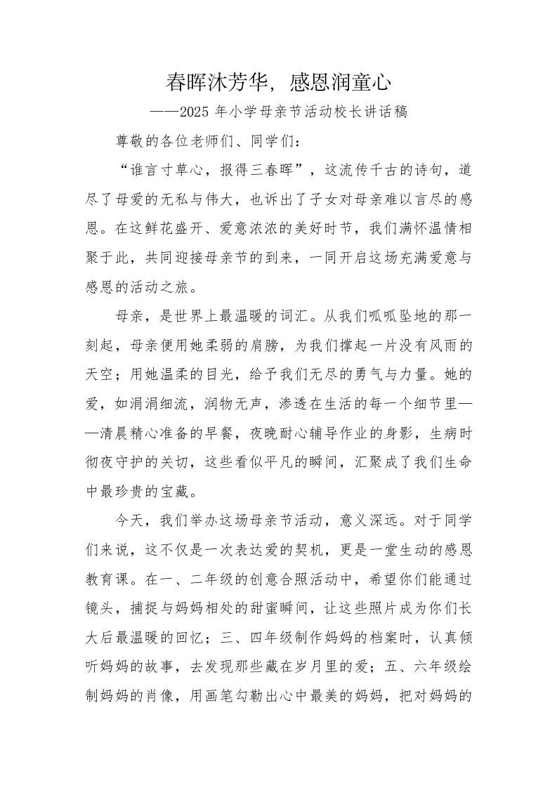 2.春晖沐芳华——2025母亲节校长讲话稿