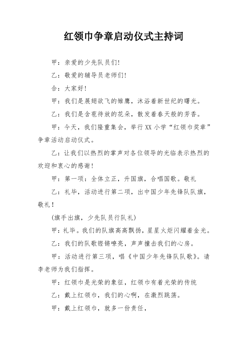 3.红领巾争章启动仪式主持词