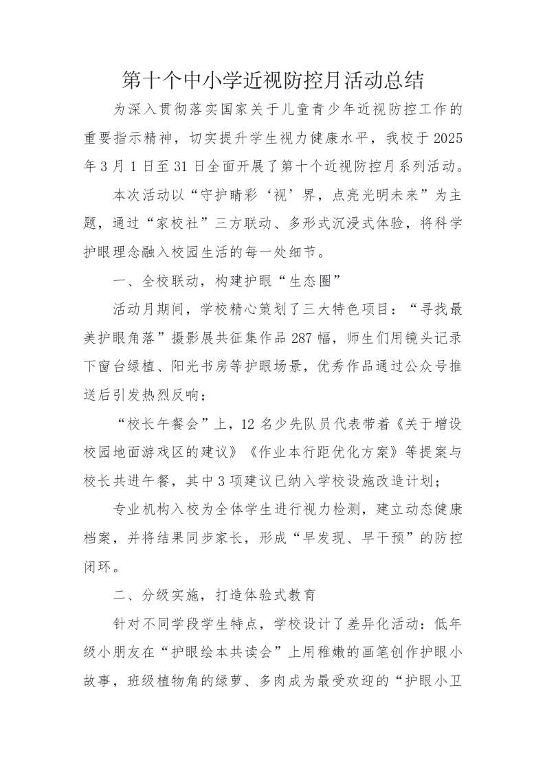 首页热门资源学校活动8.第十个中小学近视防控月活动总结