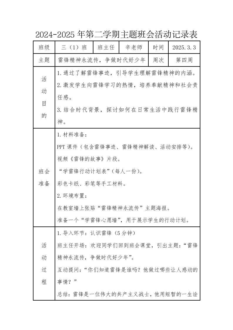 12.雷锋精神永流传,争做时代好少年——班会教案