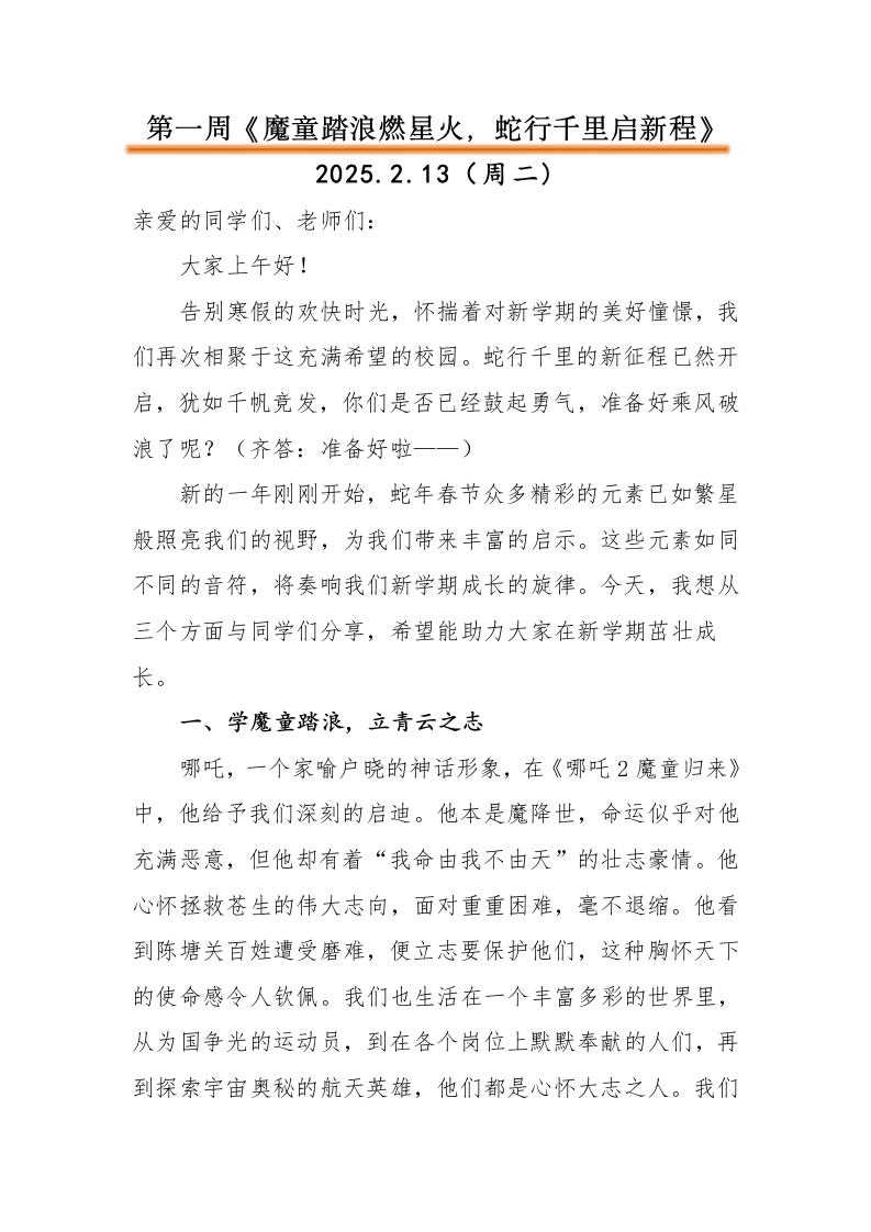 首页热门资源学校活动2024-2025第二学期升旗仪式演讲稿(一)