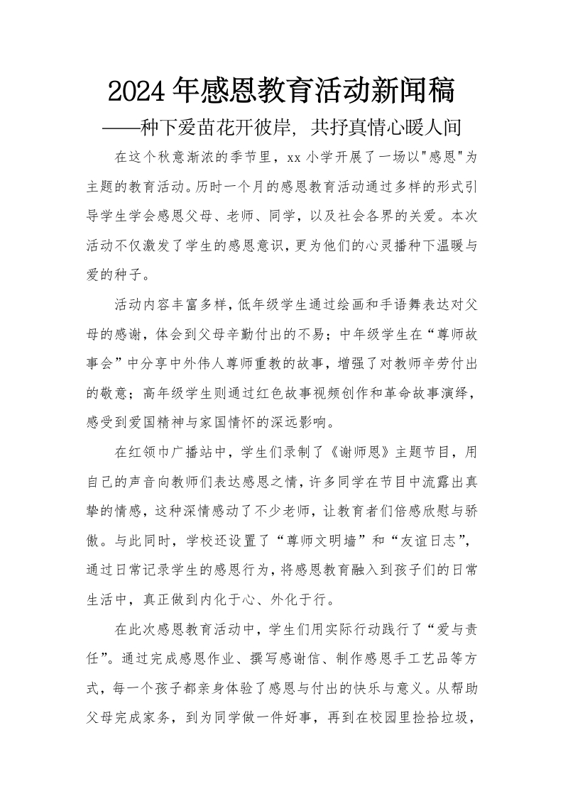 2024年感恩教育活动新闻稿