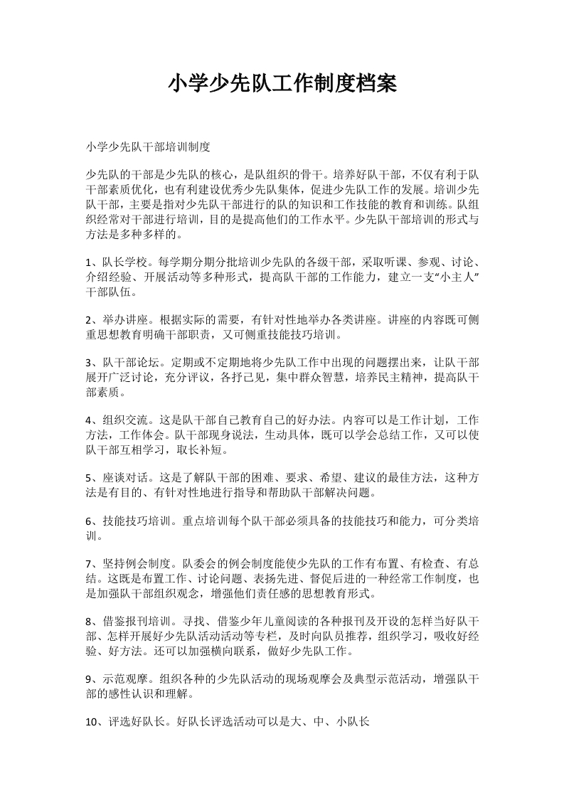 小学少先队工作制度档案