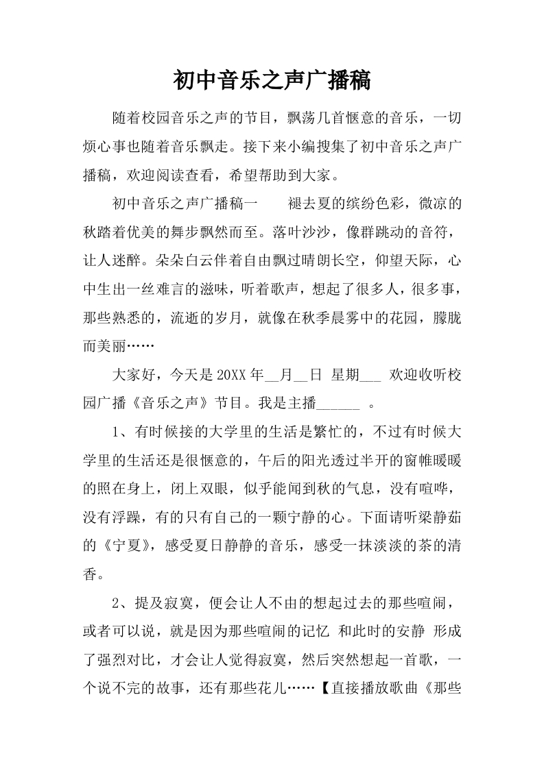 首页综合资料 校园广播[范本]初中音乐之声广播稿