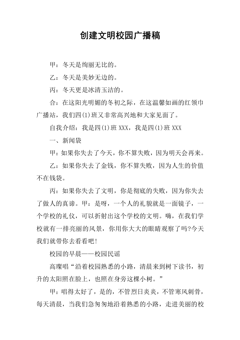 首页综合资料 校园广播[范本]创建文明校园广播稿_1