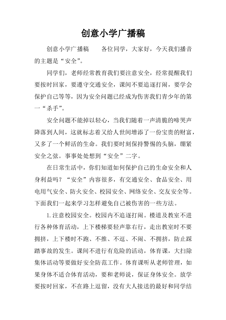 [范本]创意小学广播稿