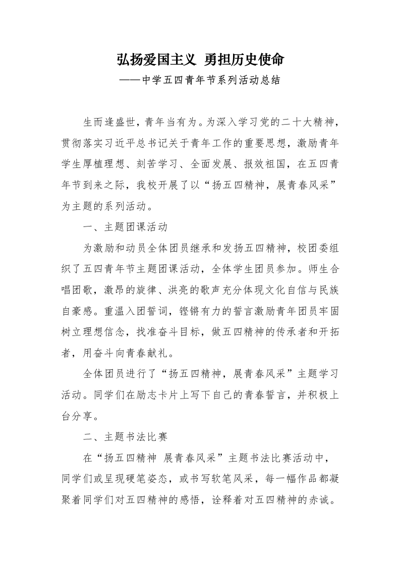 首页德育资料专题演讲中学五四青年节系列活动总结