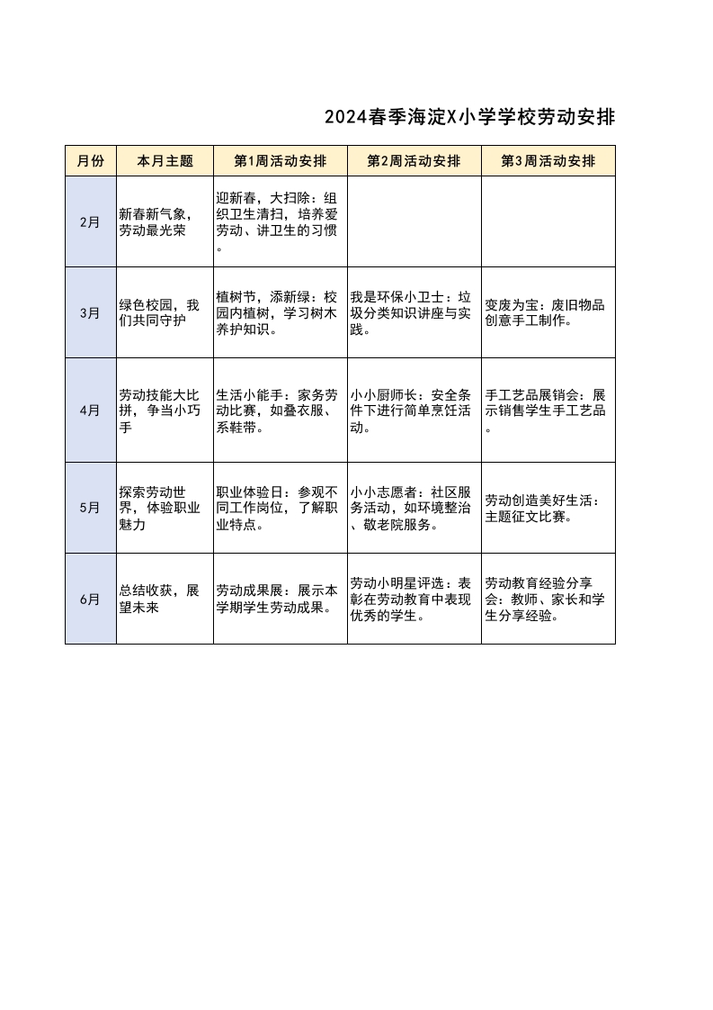 首页德育资料专题演讲2024春季海淀X小学学校劳动安排清单