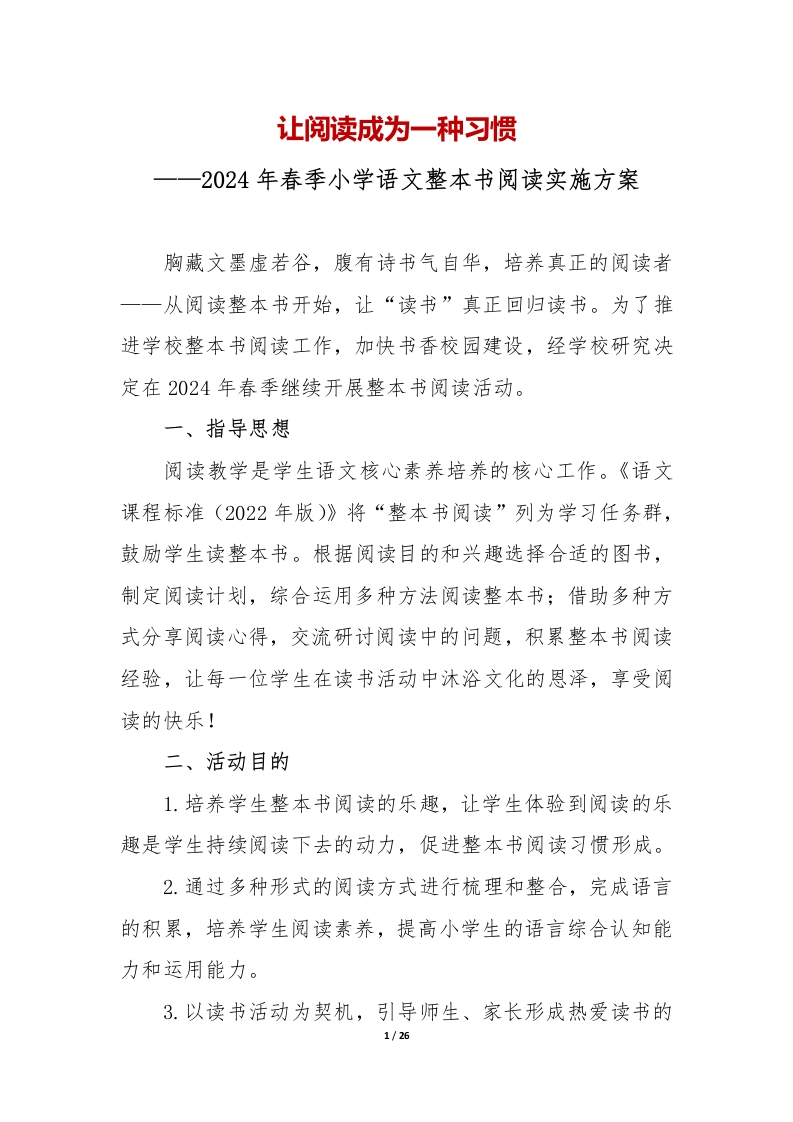 首页德育资料专题演讲2024年春季小学语文整本书阅读实施方案