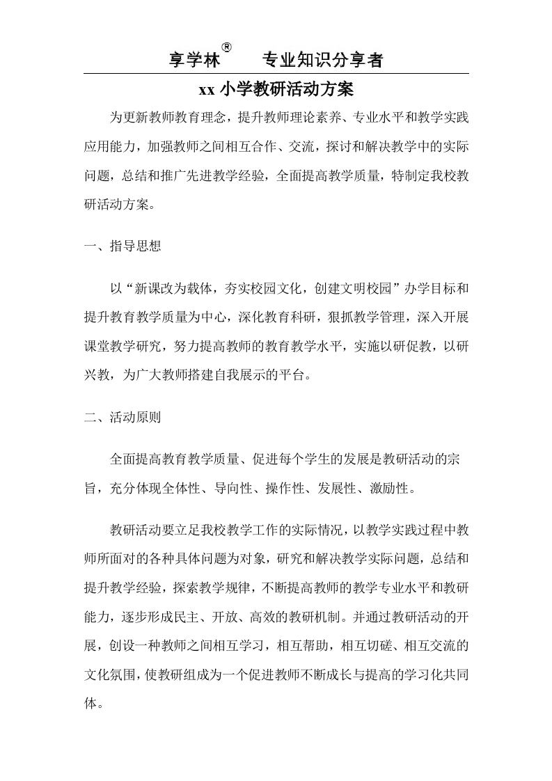 学校教研活动方案