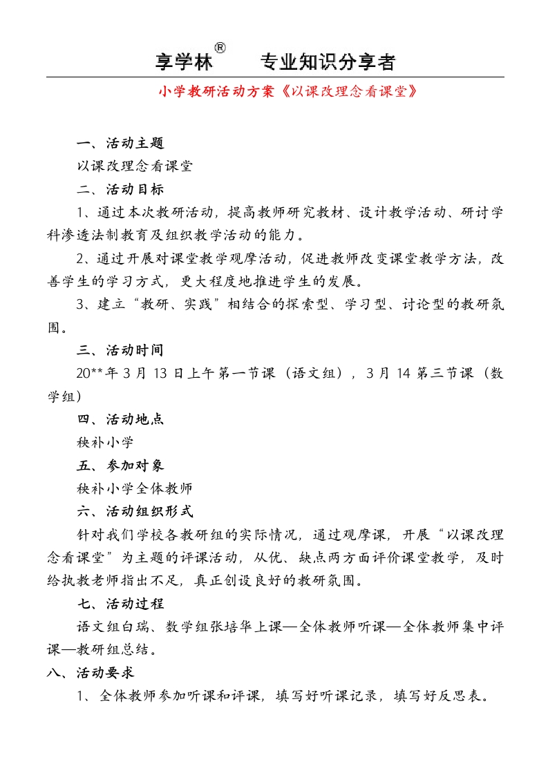 秧补小学教研活动方案