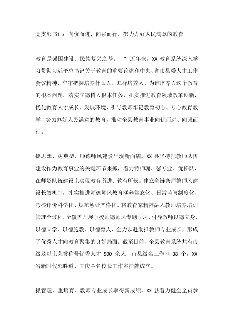 党支部书记:向优而进,向强而行,努力办好人民满意的教育
