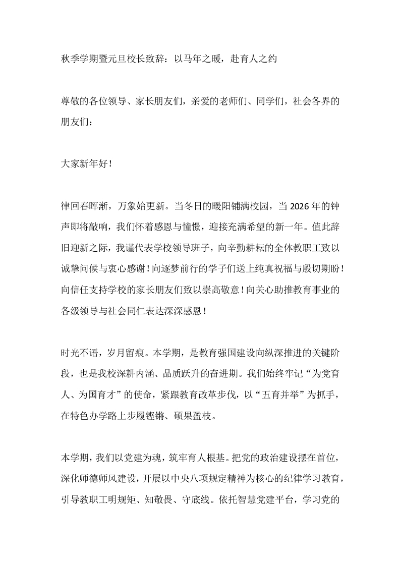 秋季学期暨元旦校长致辞:以马年之暖,赴育人之约
