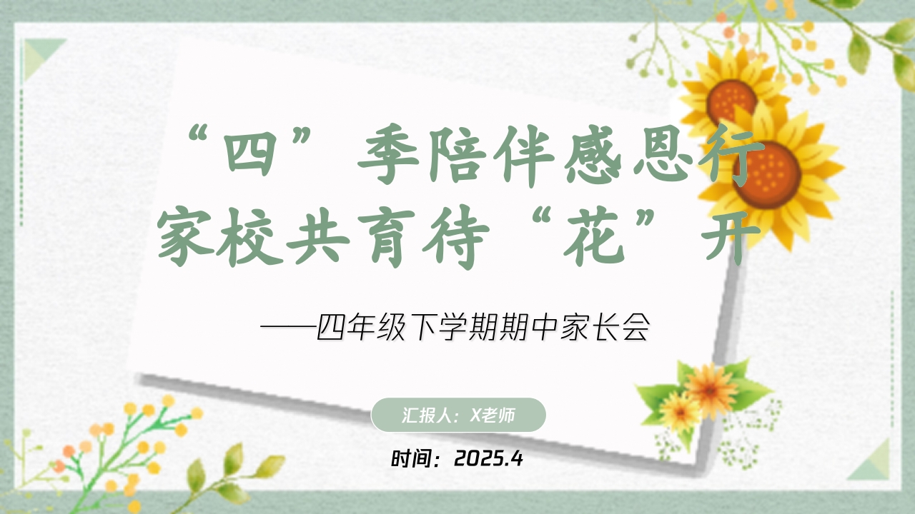 “四”季陪伴感恩行 家校共育待“花”开 四年级下学期期中家长会